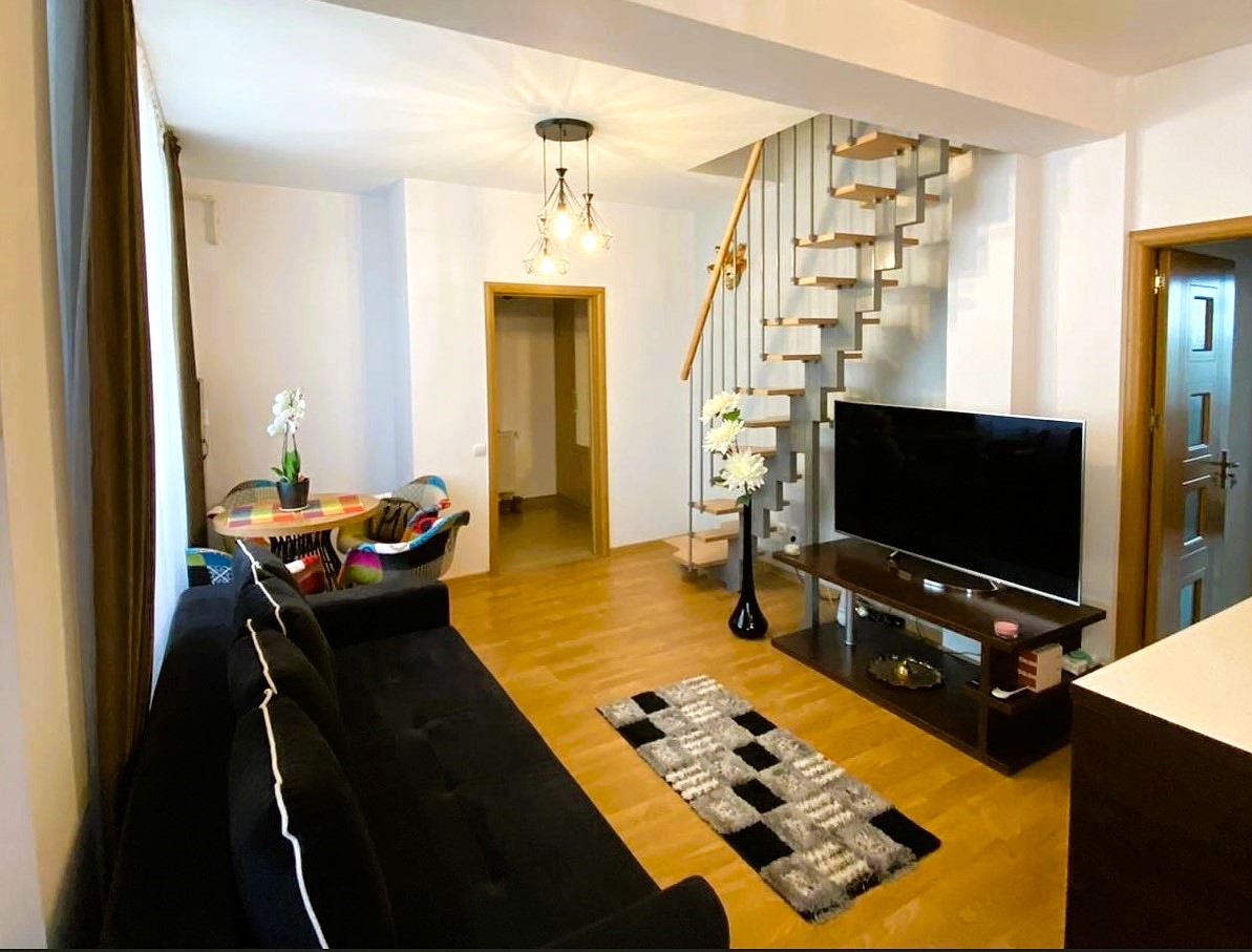 De vanzare – apartament 2 camere cu centrala proprie – 52 mp suprafata utila + o camera la mansarda50 mp suprafata utila (102 mp – suprafata locuibila si functionala) + loc de parcare = totul intr-o zona linistita cu bariera si cod de securitate pentru accesul in interior.