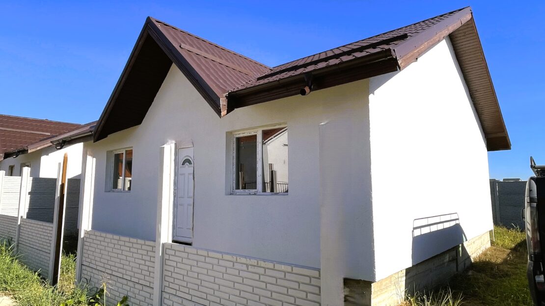 * Casa este compartimentata astfel: 2 dormitoare, living, bucatarie (daca va doriti o puteti inchide, datorita dimensiunii generoase), hol si baie, fiind potrivita pentru o familie cu copii, ofera spatiu, intimitate si liniste.