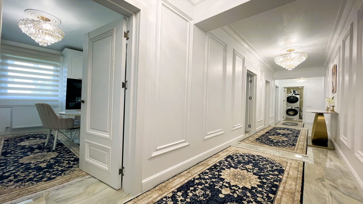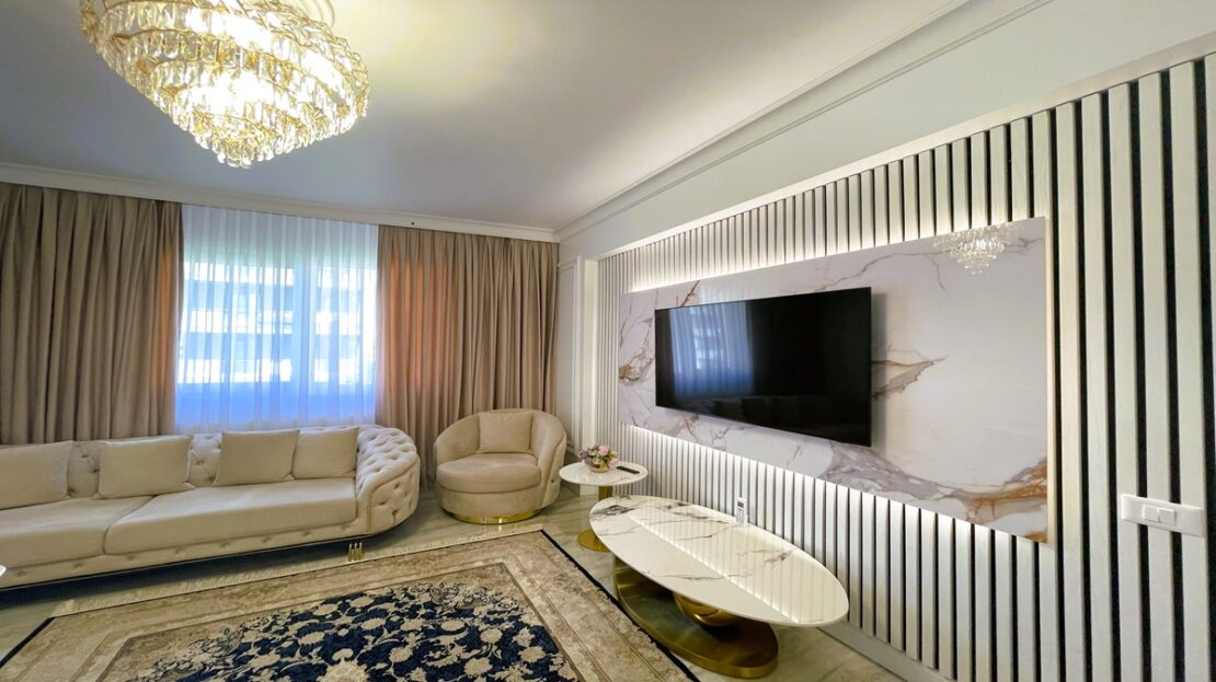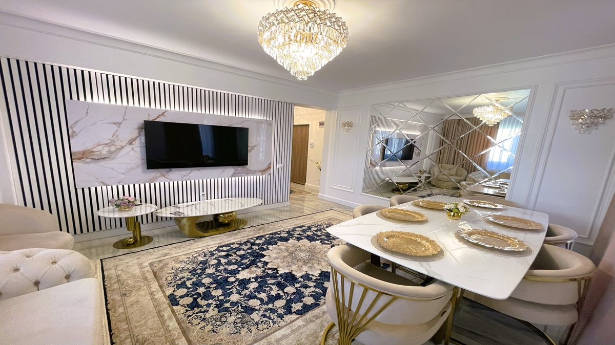 *Apartamentul este amenajat cu finisaje premium, mobilier de designer, electrocasnice de top și un ambient modern, gandit pentru confort maxim: